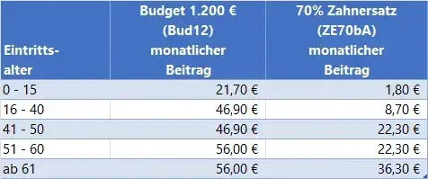 Hinweis: Alle Beitragsangaben erfolgen unter Vorbehalt und entstammen den aktuell zugänglichen Informationen des Versorgungsträgers per 07.2025. Dieser kann die Beiträge ändern, ohne dass derartige Beitragsänderungen in dieser Information gleichlautend aktualisiert würden. Bitte fragen Sie im Zweifesfall die aktuellen Beiträge über das Kontaktformular an.